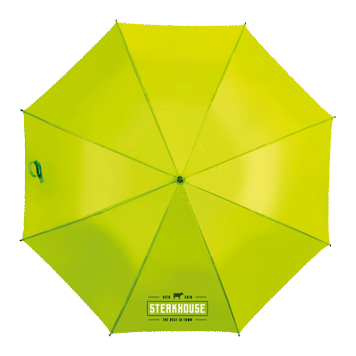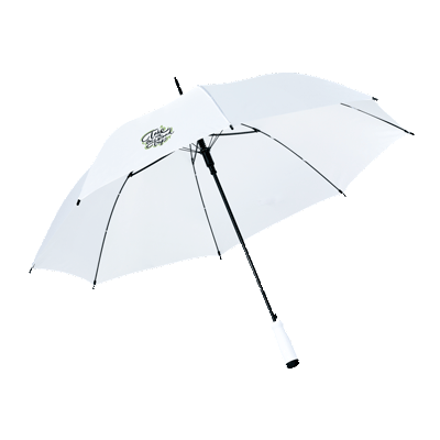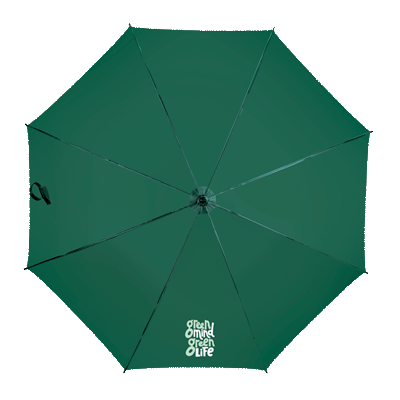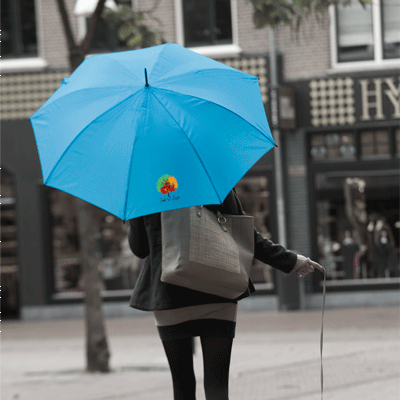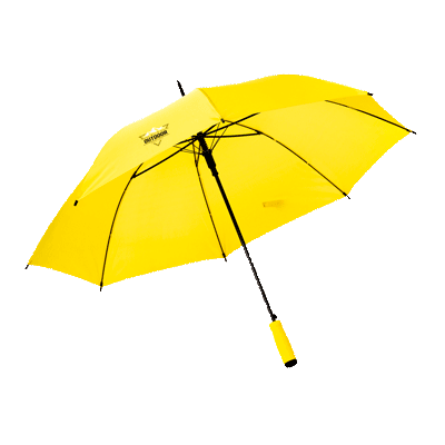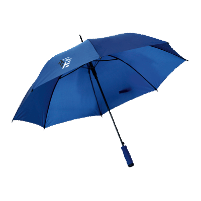 Regenschirm mit automatischer Teleskopöffnung, 190T Polyesterbespannung, Fiberglasrahmen, Metallschaft, Softgriff und Klettverschluss.